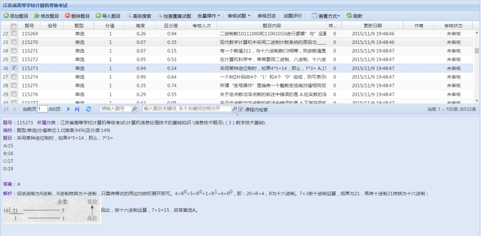 “检查重复试题”:对当前课程重复的题目检索并列出。